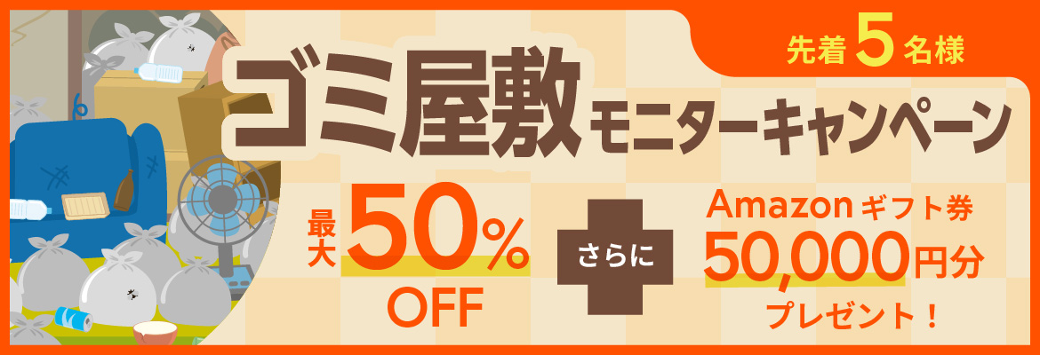ゴミ屋敷モニターキャンペーン「最大50%OFF+Amazonギフト5万円分」