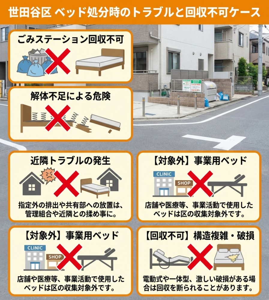 大きな家具であるベッドは、その処分方法を誤るとさまざまなトラブルの原因になります。特に世田谷区はゴミの分別や粗大ごみに関して厳しい基準があるため、ルールを正しく理解することが重要です。