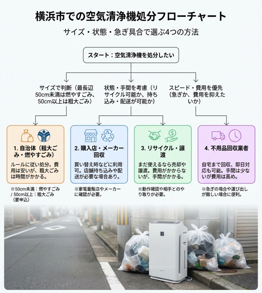 横浜市で服を処分する方法は、大きく分けて以下の4パターンです。