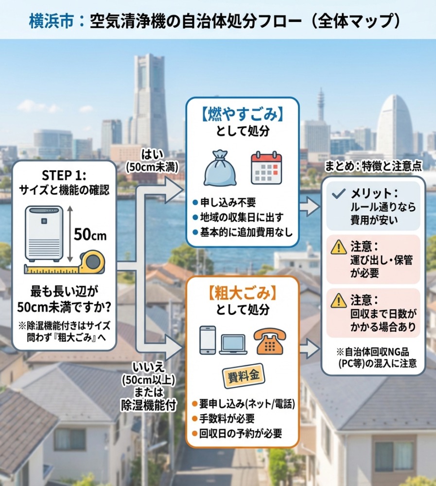ただし、無許可営業の回収業者には注意が必要。横浜市のホームページ等から「一般廃棄物収集運搬許可業者」であるかどうかを確認してから依頼しましょう。