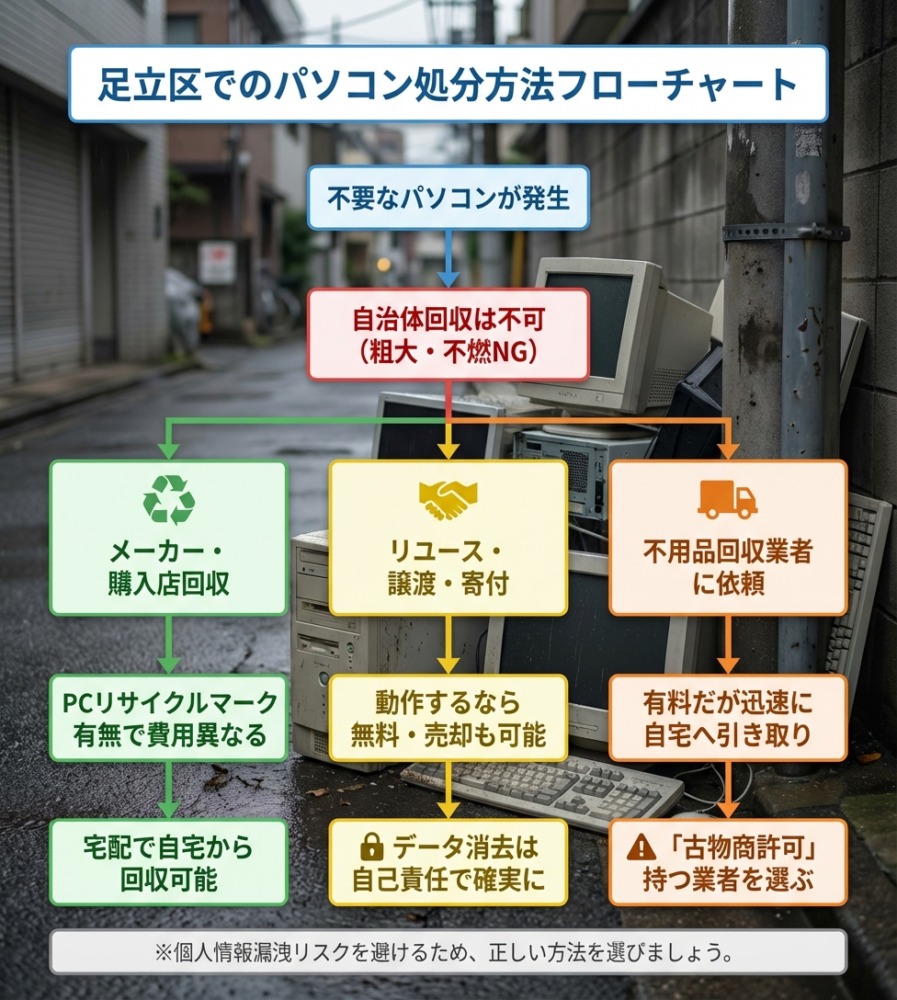 次に、それぞれの処分方法について、足立区での具体的な利用方法やポイントをご紹介します。