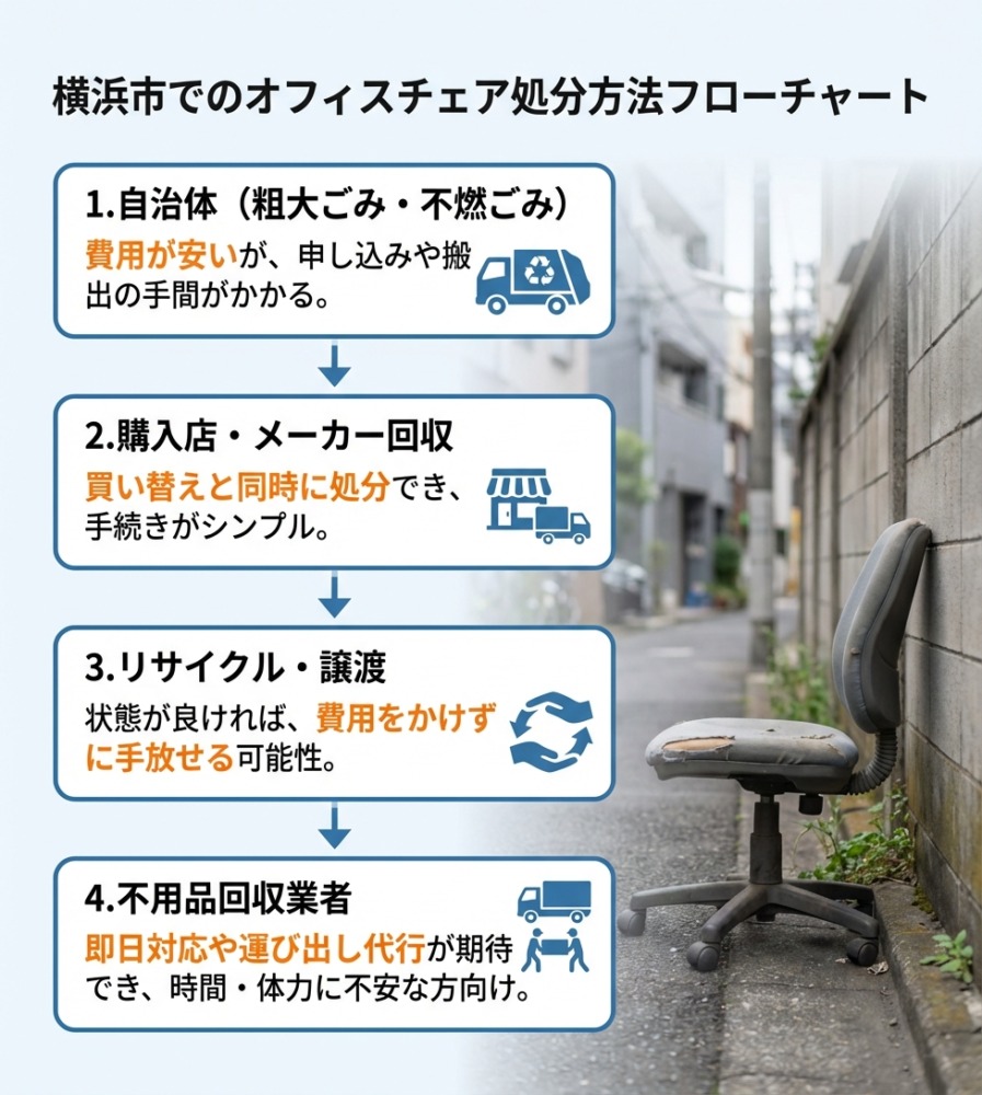横浜市で電子ピアノを処分するには、主に4つの方法から選べます。それぞれ手間や費用、対応スピードなどが異なります。ここでは、処分先や流れ、注意点を詳しくご紹介します。