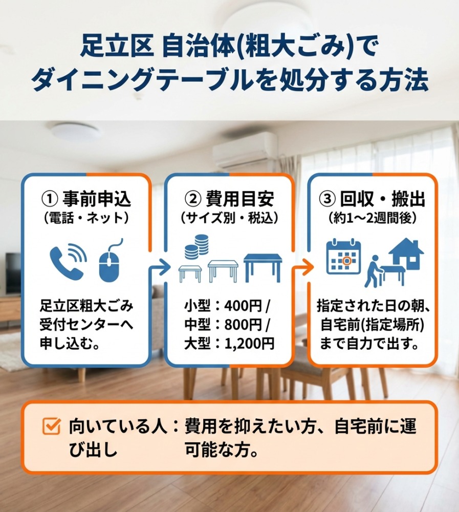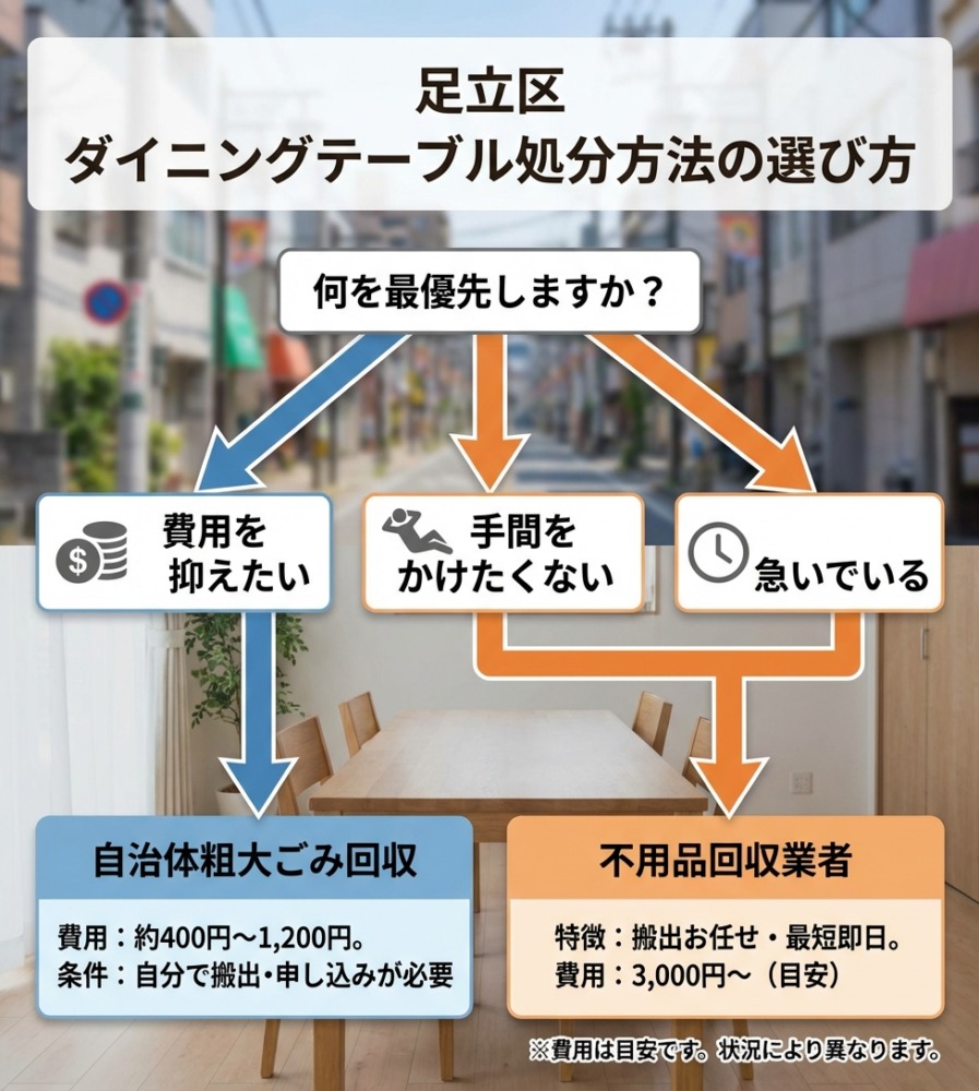 足立区のダイニングテーブル処分ルールと費用の基本