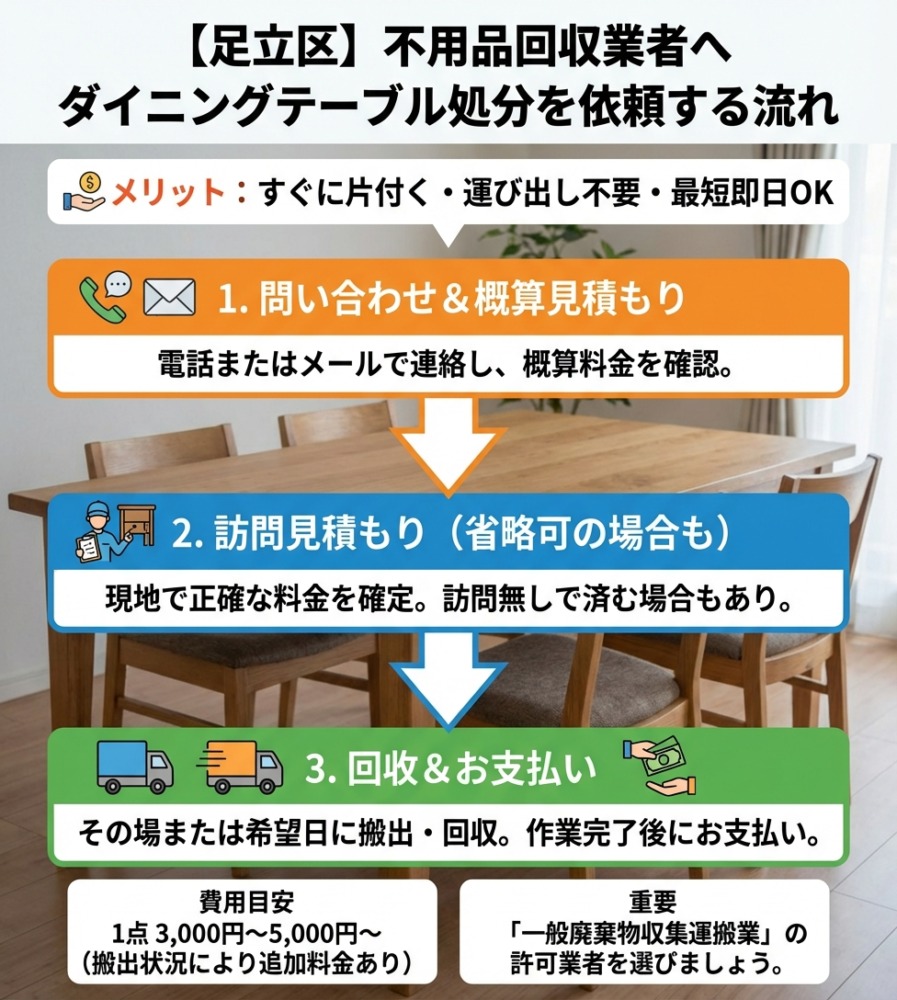 足立区のダイニングテーブル処分方法|費用・持ち込み・無料回収の注意点を解説