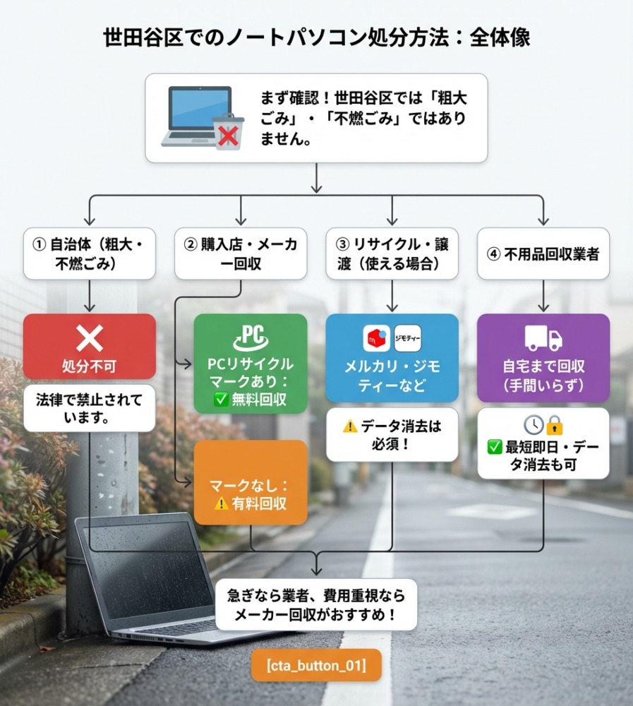 世田谷区でノートパソコンはどう処分する?まずは全体像を確認