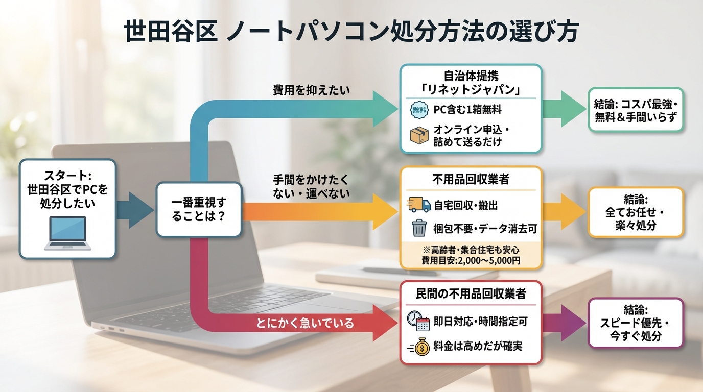 まとめ|世田谷区でノートパソコンを処分するなら状況に合った方法を選ぼう