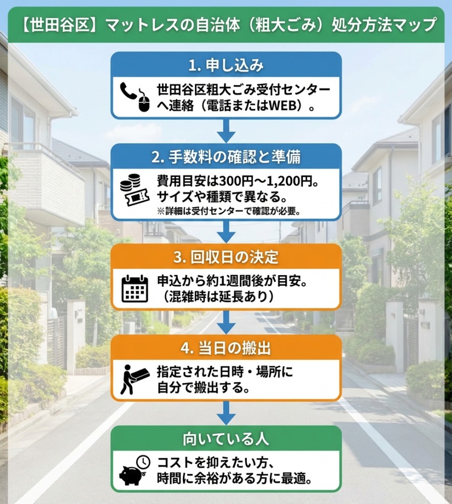 以下の表で、世田谷区でのマットレス処分に必要な情報を整理しました。