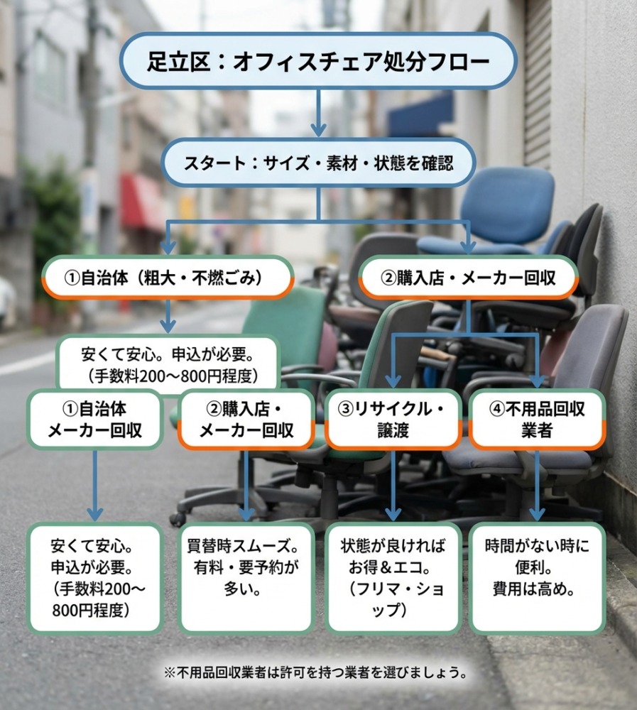 足立区でオフィスチェアを処分する方法を徹底解説!具体的な流れと注意点