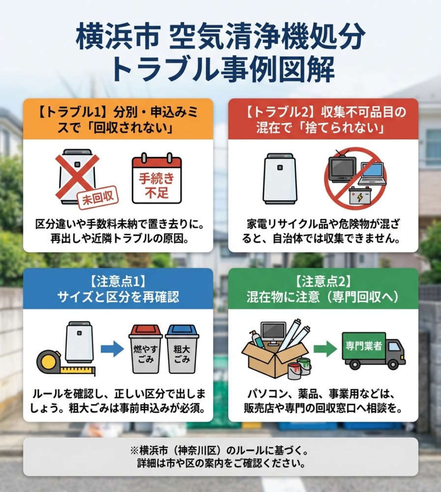 プリンターをごみとして処分する際に、「誤った分別」や「不適切な出し方」をすると、さまざまなトラブルが発生する可能性があります。