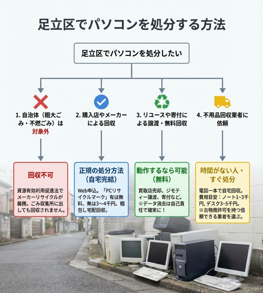 以下で、足立区で利用可能な処分方法のポイントや、実際に行動する際に必要な情報を詳しく整理していきます。