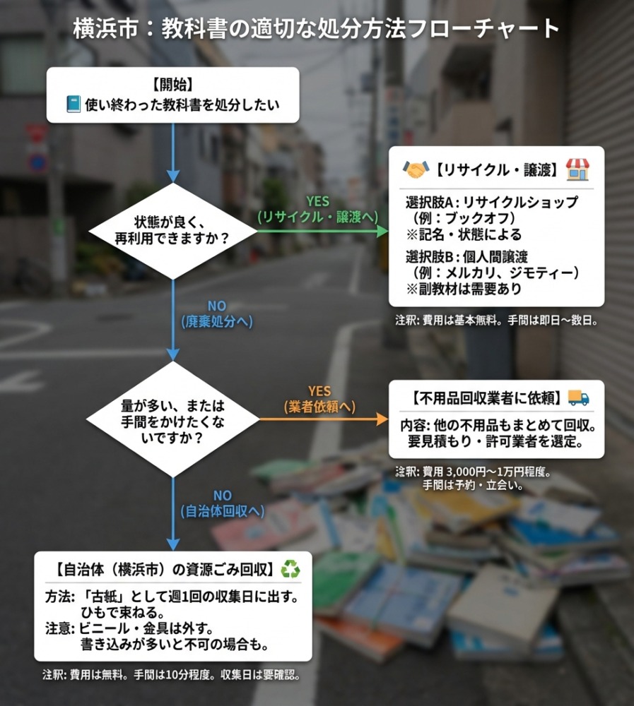 教科書は紙でできているため、家庭ごみに分類されがちですが、横浜市では資源ごみとしての分別が推奨されています。ここでは、教科書を自治体の仕組みの中できちんと処分する方法をわかりやすく整理しました。