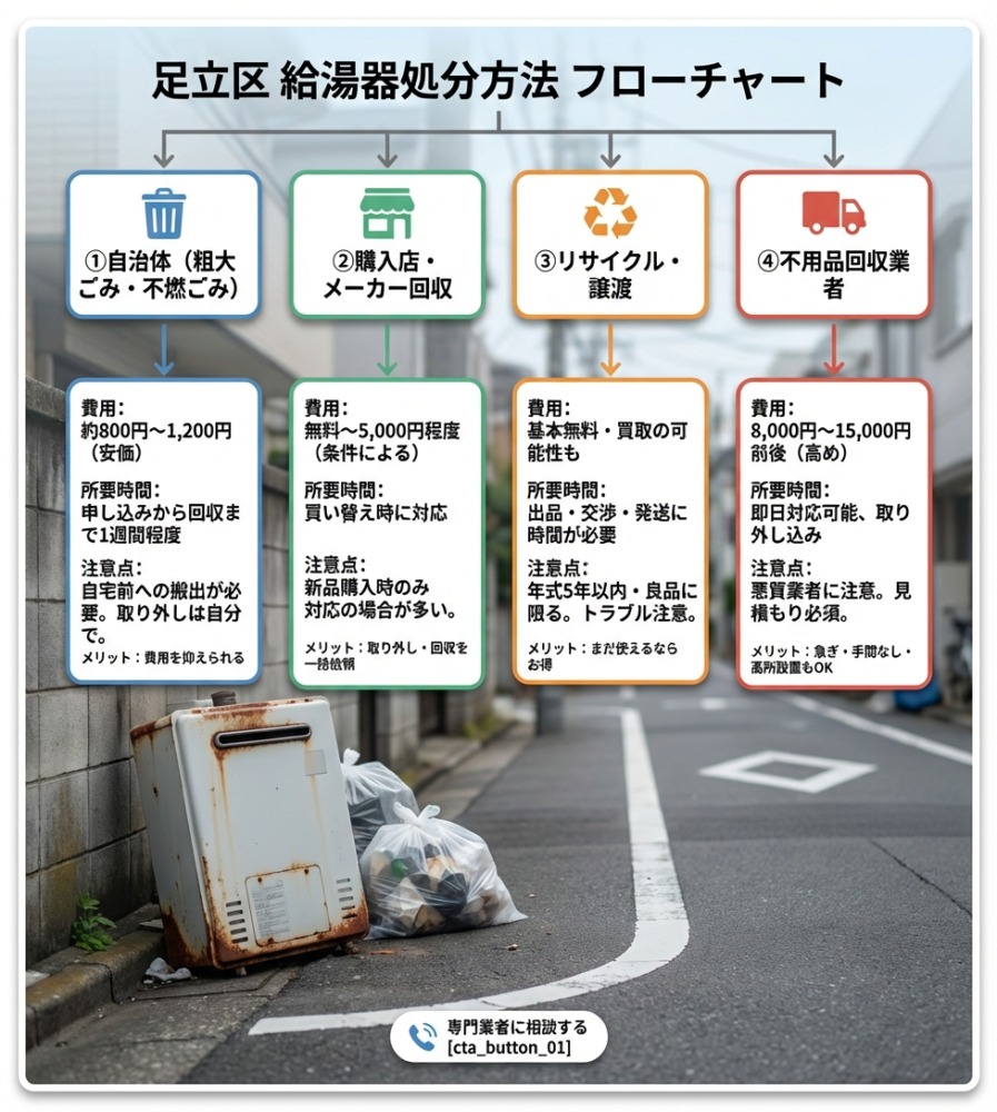 足立区で給湯器はどう処分する?まずは全体像を確認