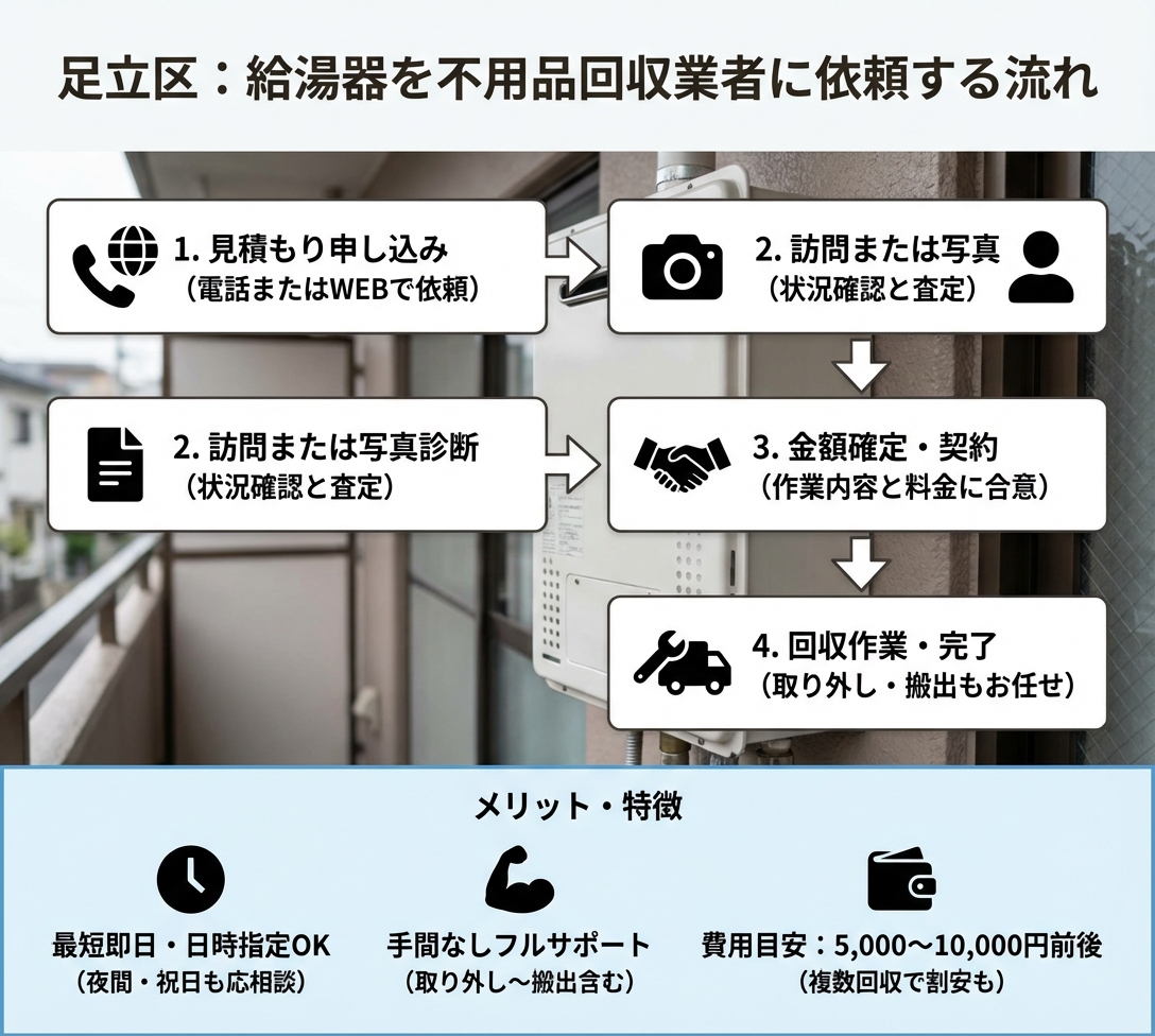 足立区で給湯器や重たい家電の処分に困っているなら、まずは気軽に無料見積もりを。