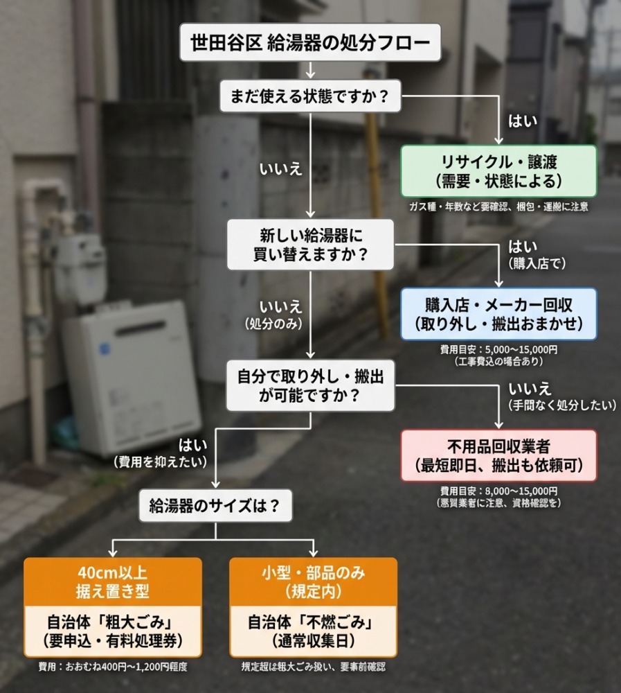 世田谷区の給湯器処分方法|費用・持ち込み・無料回収の注意点を解説